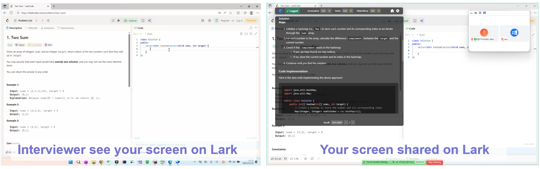 Running in stealth, stay secure. You can keep the focus on your performance, not the tools behind it. Undetected on all interview platforms, including Zoom, Microsoft Teams, Google Meet, Lark, Hackerrank, CoderPad, etc.